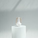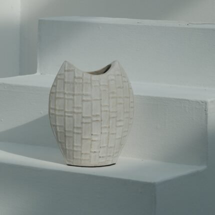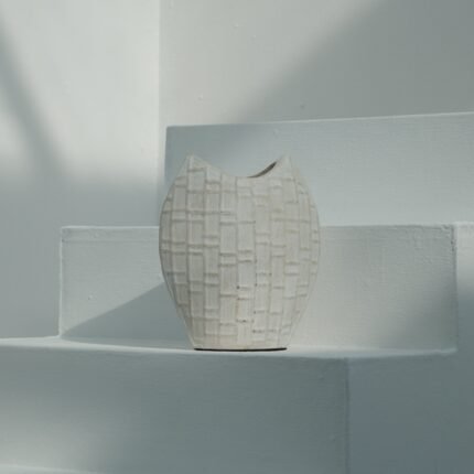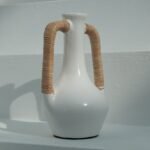 Each Olie Vase is hand-thrown by skilled artisans and finished with carefully woven rattan handles. Subtle variations in shape and finish are a hallmark of its handcrafted nature, ensuring no two are exactly alike