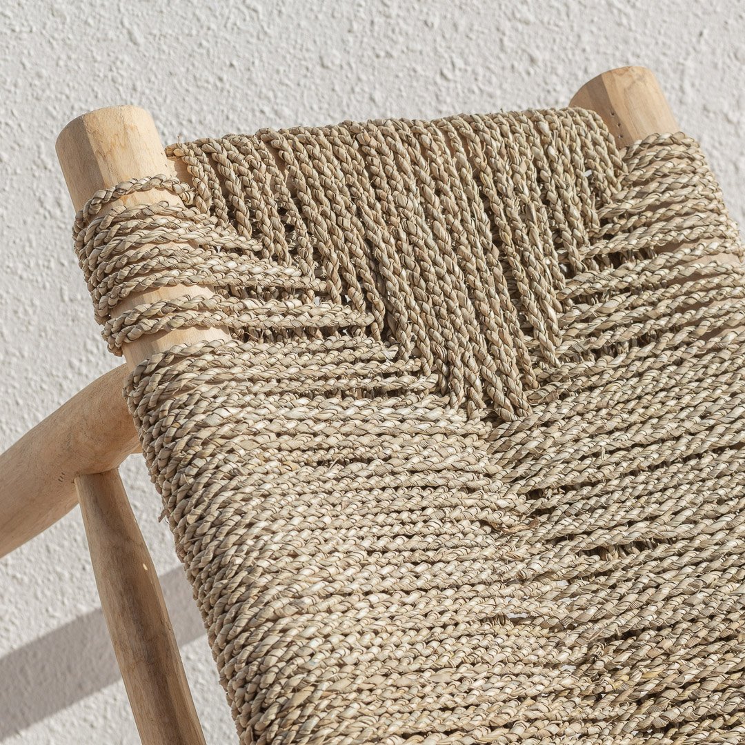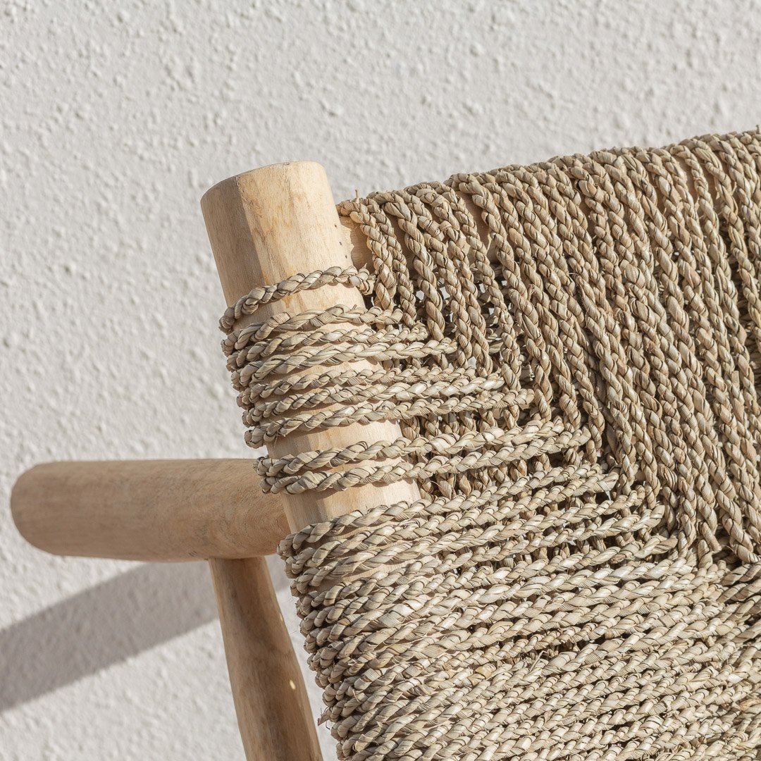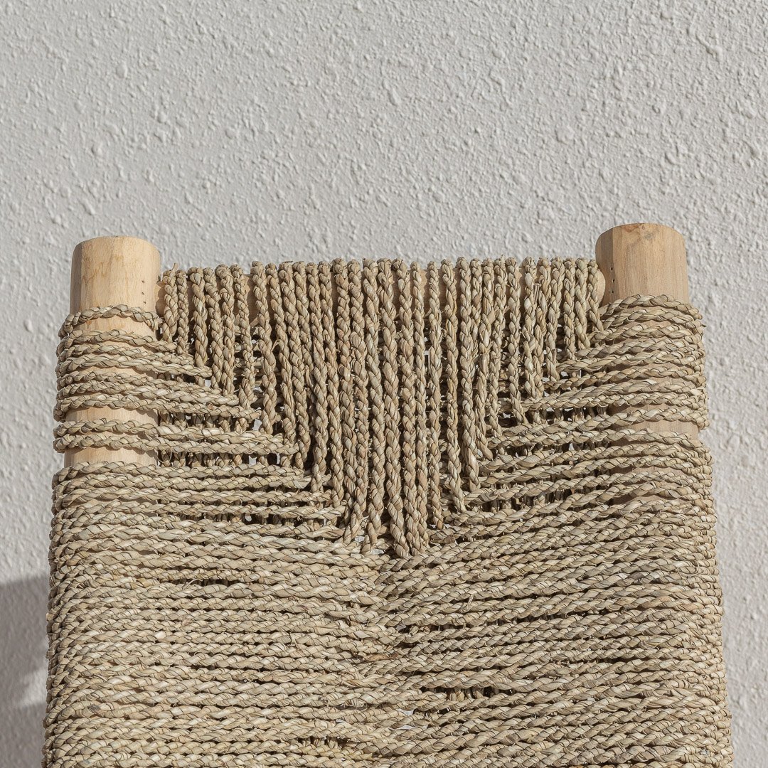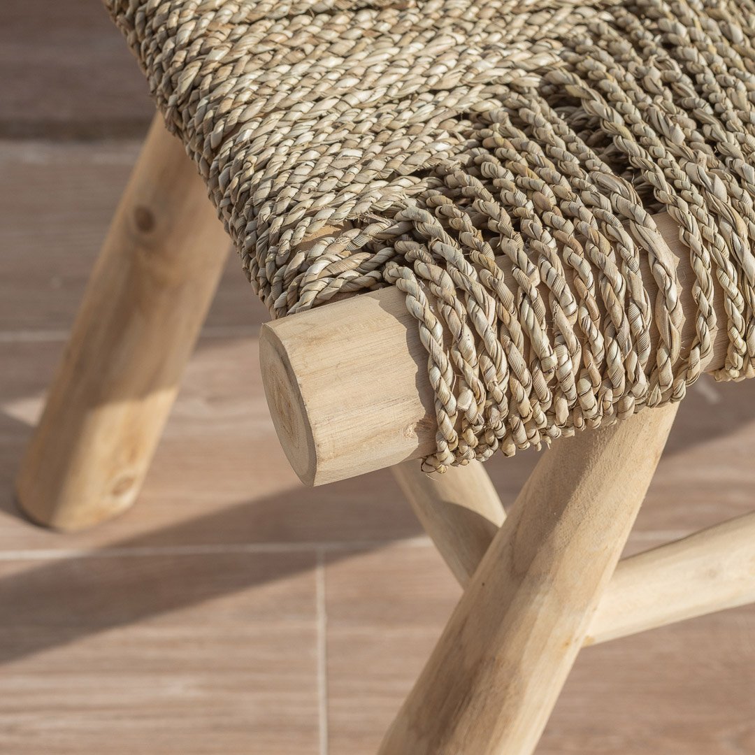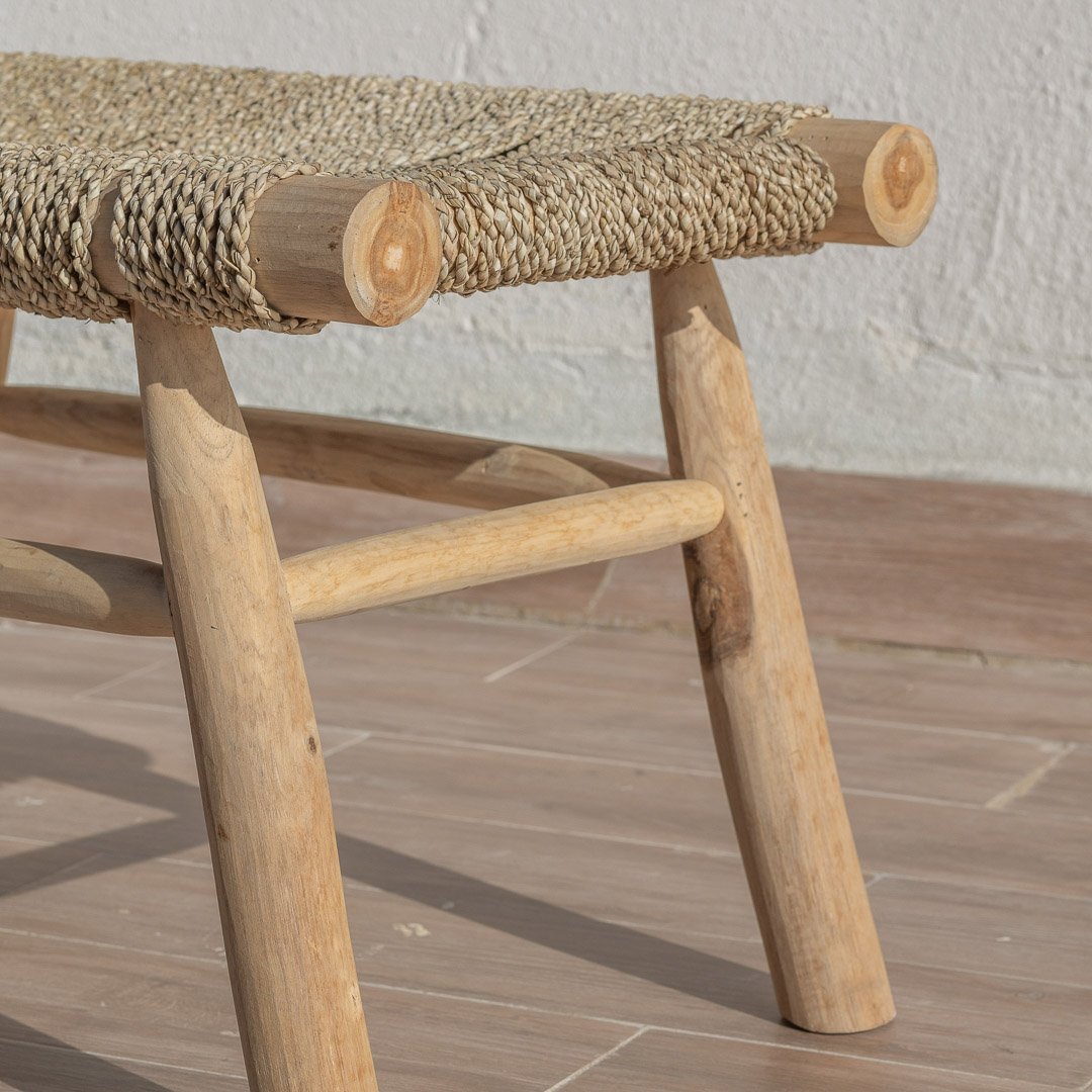 Textured woven seagrass wooden bench with multiple uses. Practical in the entrance, to sit in the living room or simply decorative, this Badu bench is essential for a boho chic decoration.