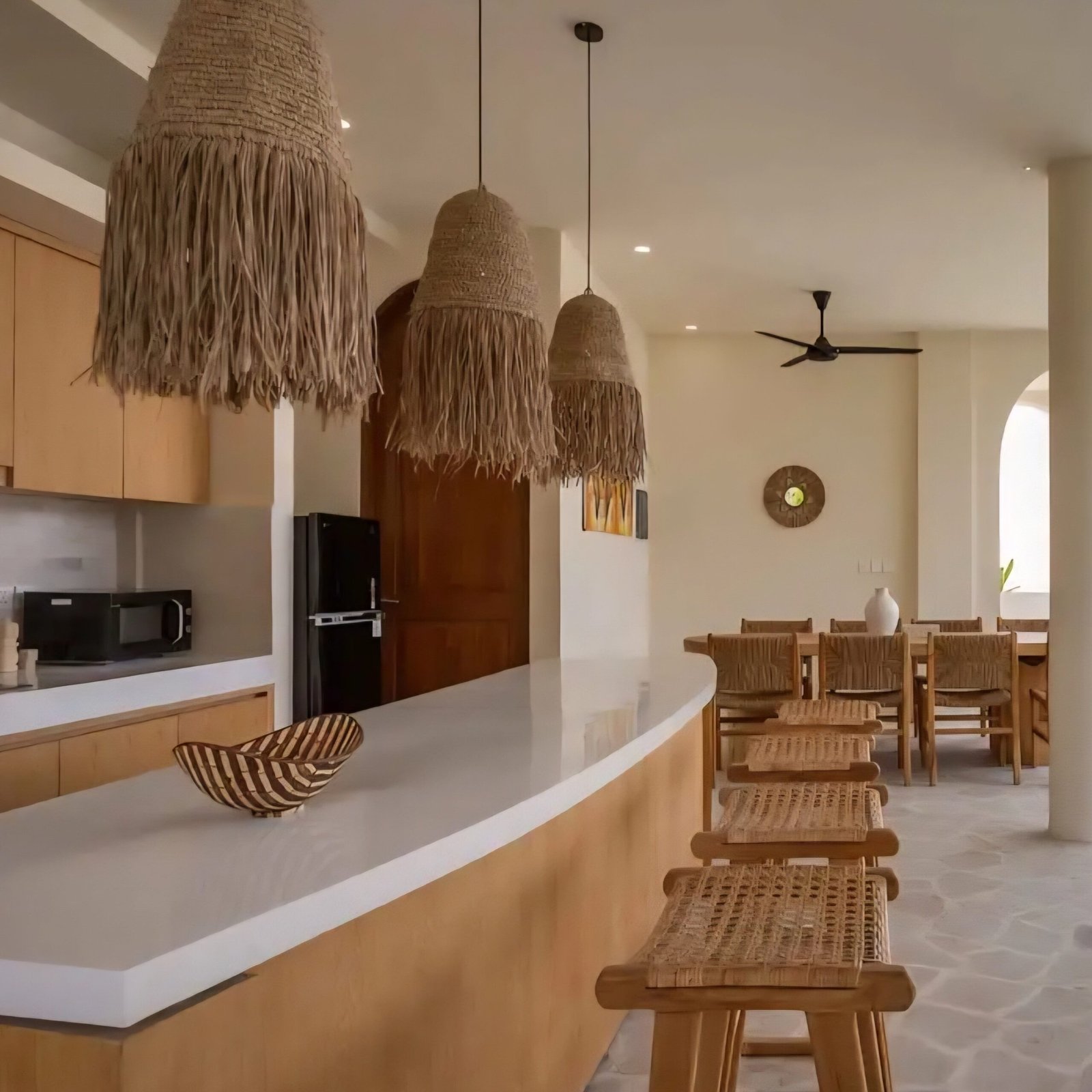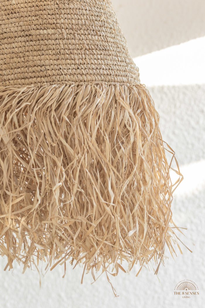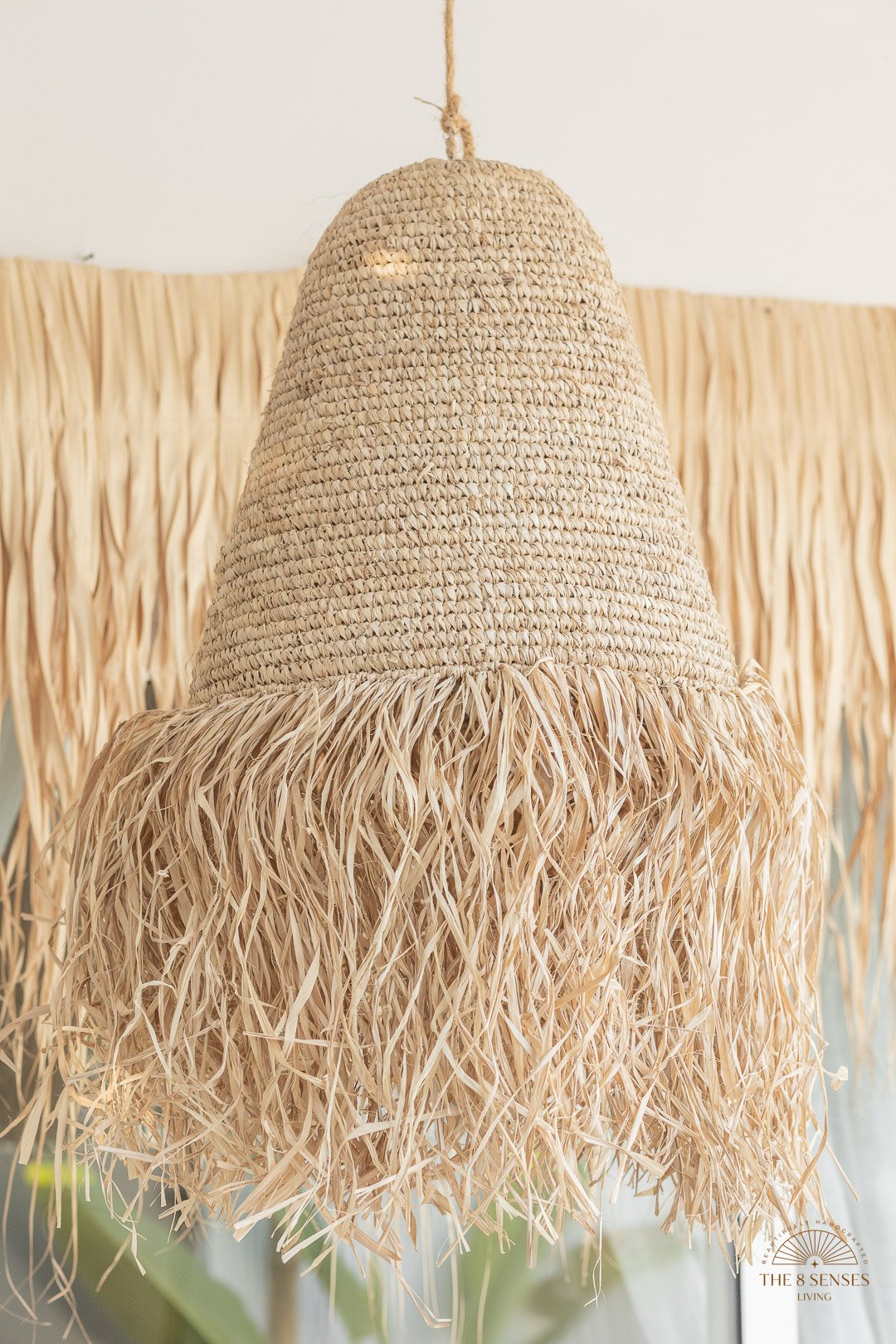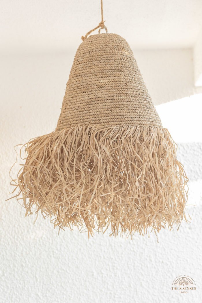 Hand-woven from natural agel grass, the Bahamas pendant shade has a tapered dome shape with a raffia tassel edge. Beachy feel, coastal look, boho touch.