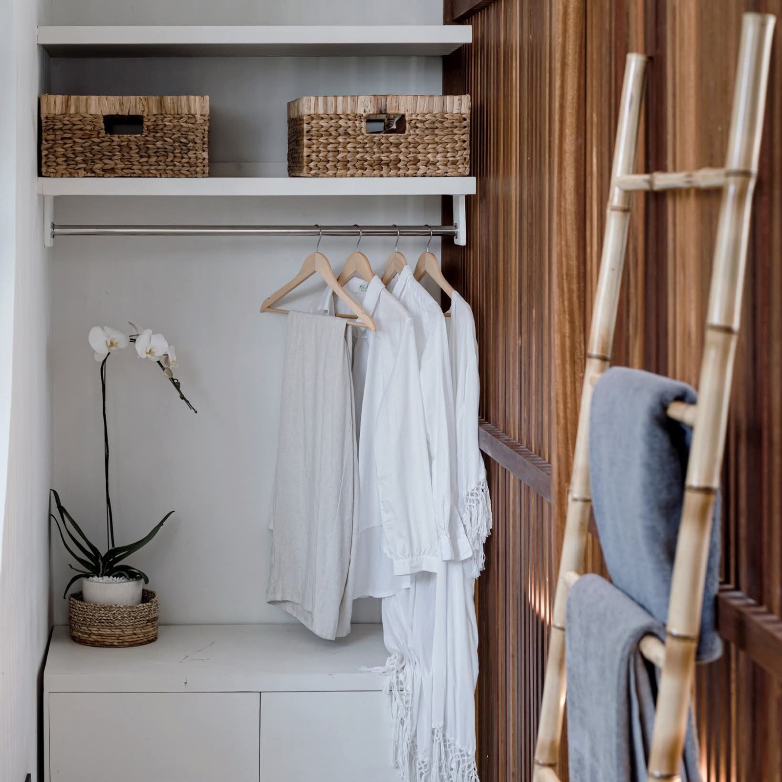 Are you looking for a stylish solution to arrange towels in a bathroom or for a purely decorative purpose in another place? Bamboo ladder will easily find its place and enhance the appearance of the room.