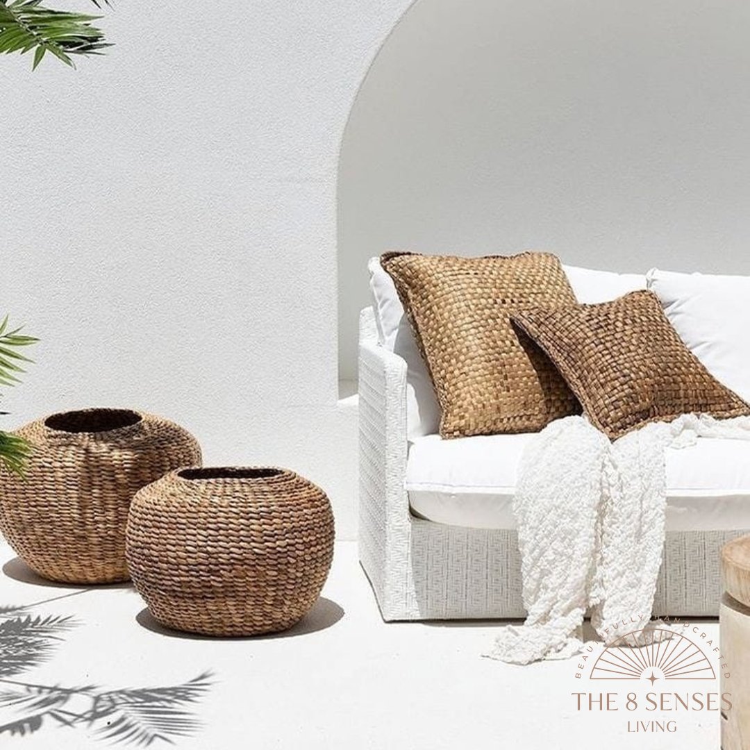 Raw banana leaf pillow is a handwoven in a beautiful pattern and features its natural colour. These rough textured pillows are the most natural pillow you can find!