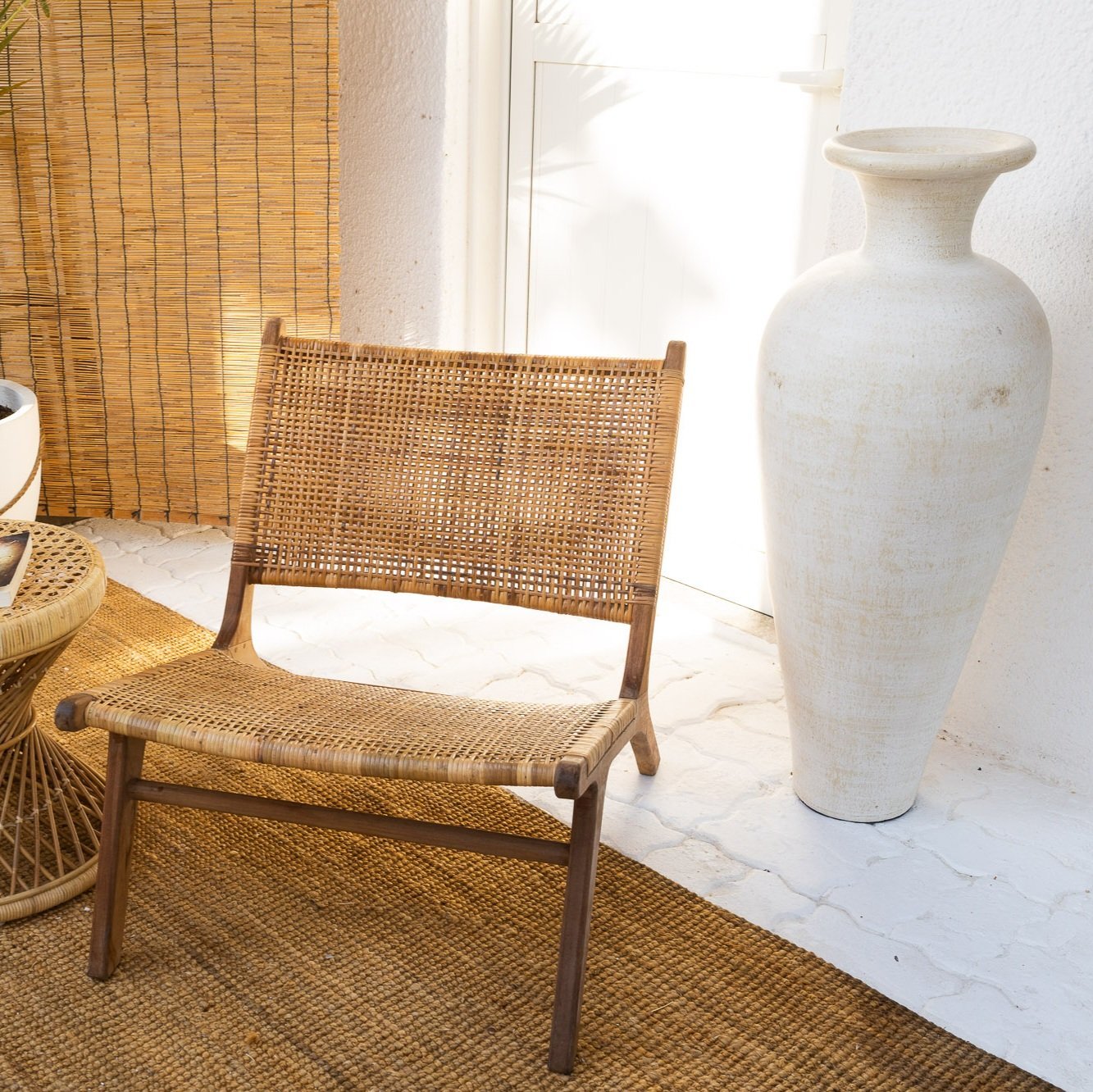 The Candis occasional chair features natural elements in a unique design to add a fresh personality to any setting. Handcrafted by Indonesian artisans, this low-level chair features natural wicker carefully woven onto a solid teakwood frame for a comfortable and laid-back addition to your indoor or outdoor living space.