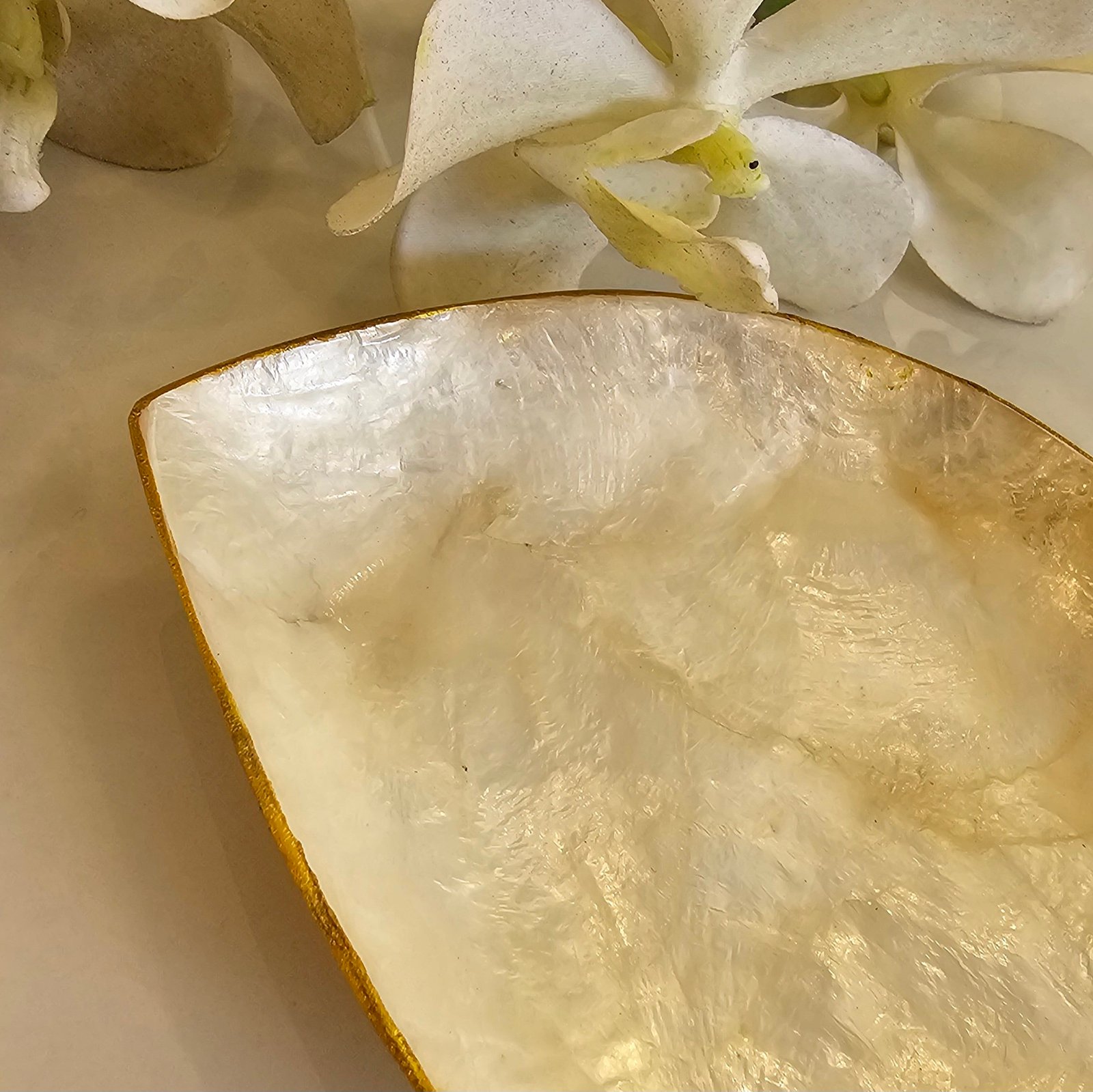 Add a touch of elegance and natural beauty to your home with this charming Capiz Shell Bowl. With its delicate pearlescent sheen and minimalist design, it brings a soft, coastal feel to any space. Perfect for holding small items, as a decorative accent, or as part of a curated display.