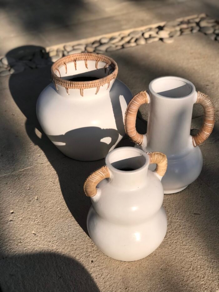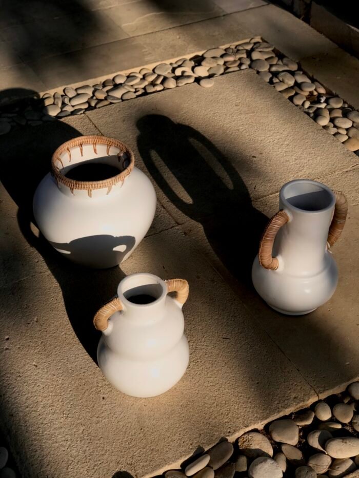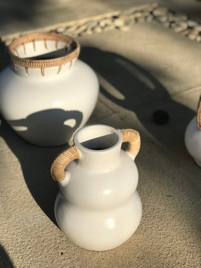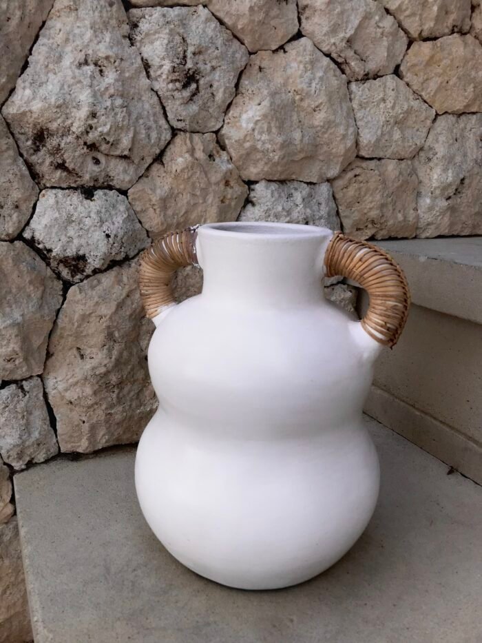 Elegant Darina Vase embodies the beauty of simplicity and craftsmanship. With its graceful silhouette, natural terracotta texture, and rattan-detailed handles, it effortlessly adds warmth and authenticity to any interior. The organic blend of clay and woven rattan creates a striking balance between earthy charm and refined design, making it a timeless accent for both modern and rustic spaces.