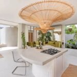 The unique large eye-catching pendant shades with their softly curved organic shape are handmade by skilled Balinese artisans. Melding a classic shape perfectly with modern design, this pendant lamp makes for a beautiful statement piece suited to a variety of interior styles.