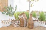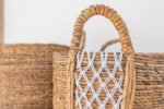 Handmade in Indonesia of 100% banana leaf, open-weave basket features macrame details