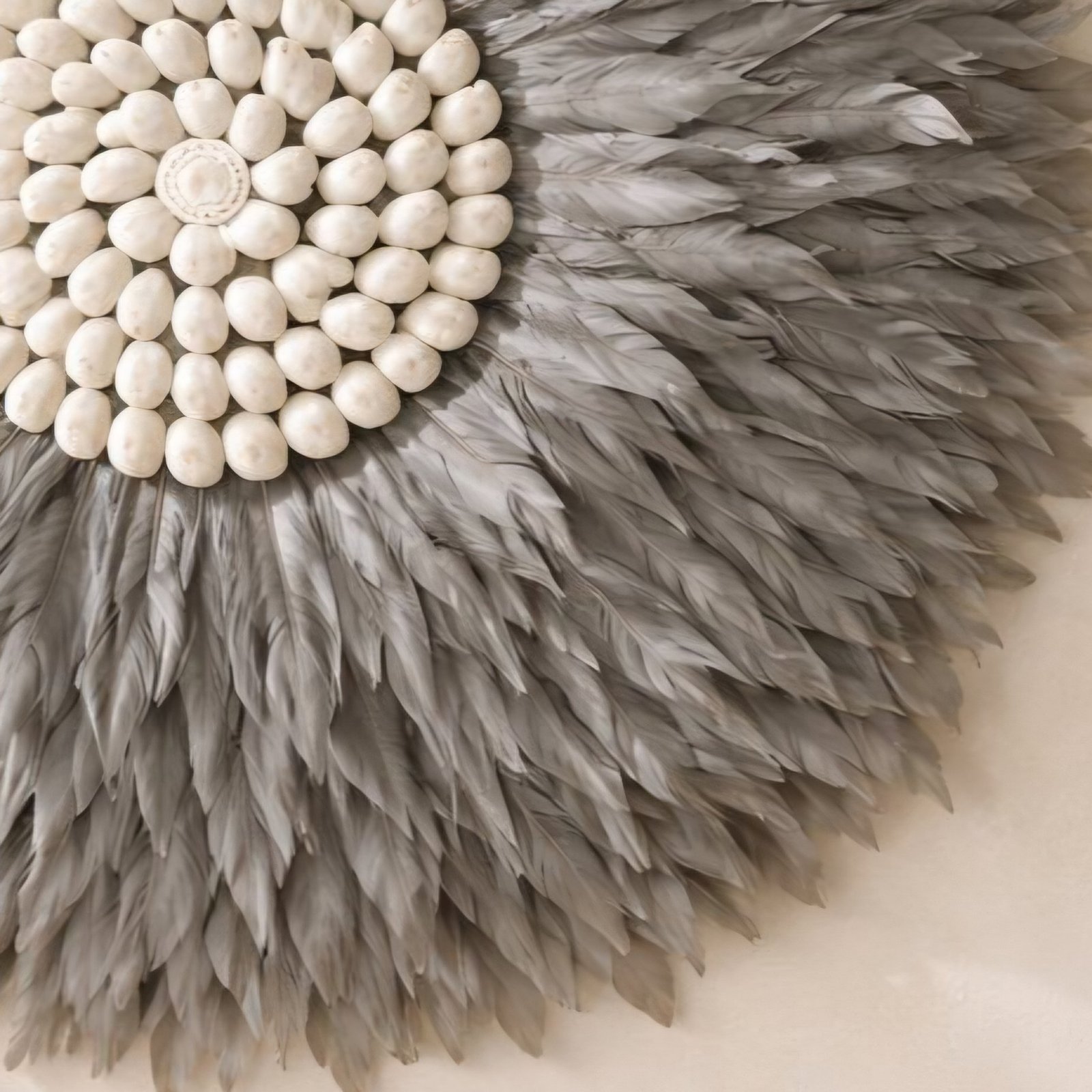 GREY JUJU FEATHER WALL DECOR| WHITE SHELLS