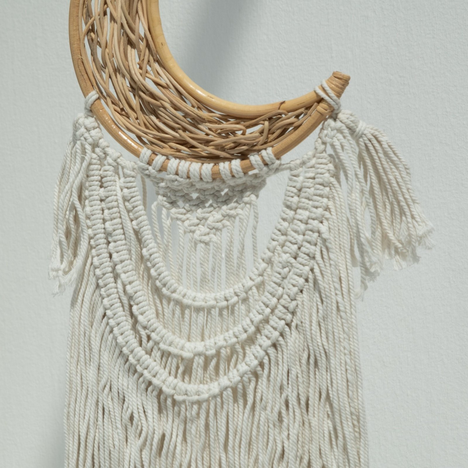 Bring a touch of celestial beauty to your space with the Macramé Half Moon Wall Hanging. Handcrafted with intricate knot work, this unique piece combines natural textures with a modern boho design, making it the perfect accent for a peaceful, stylish home.