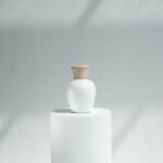 Each Vanika Vase is hand-thrown by skilled artisans and finished with carefully woven rattan handles. Subtle variations in shape and finish are a hallmark of its handcrafted nature, ensuring no two are exactly alike