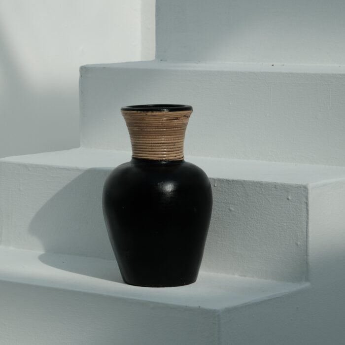 Home Collections Terracotta Collections VANIKA VASE| RATTAN NECK