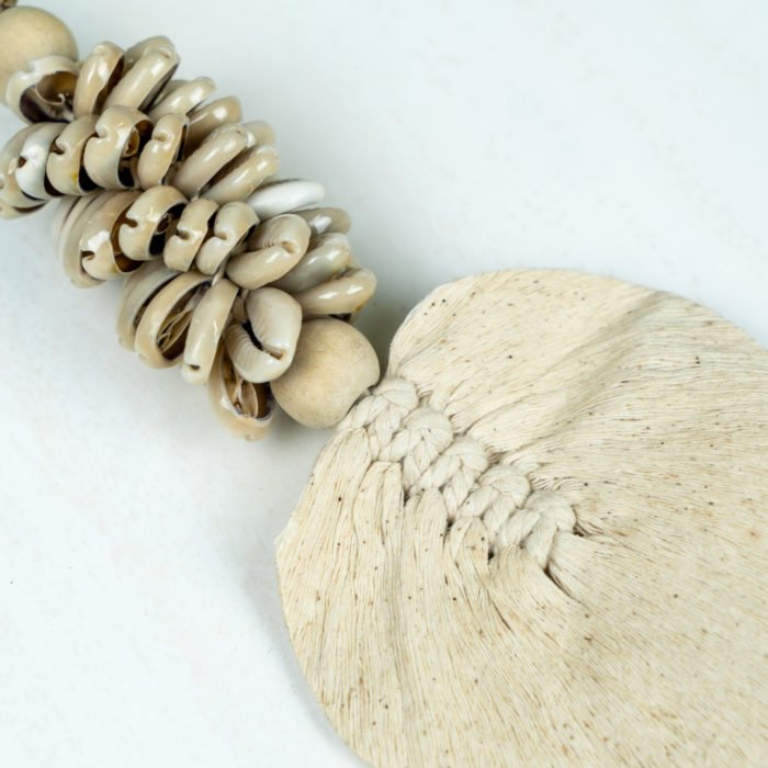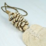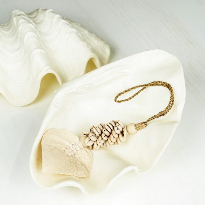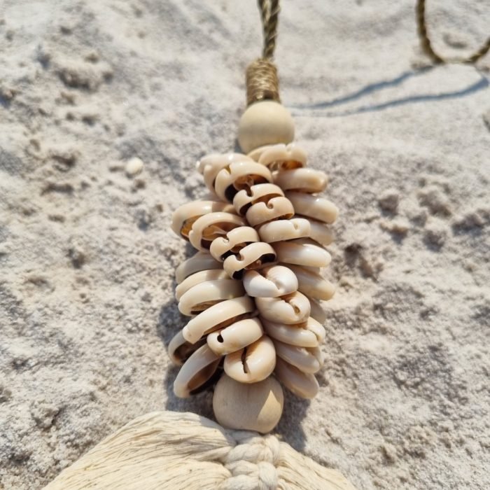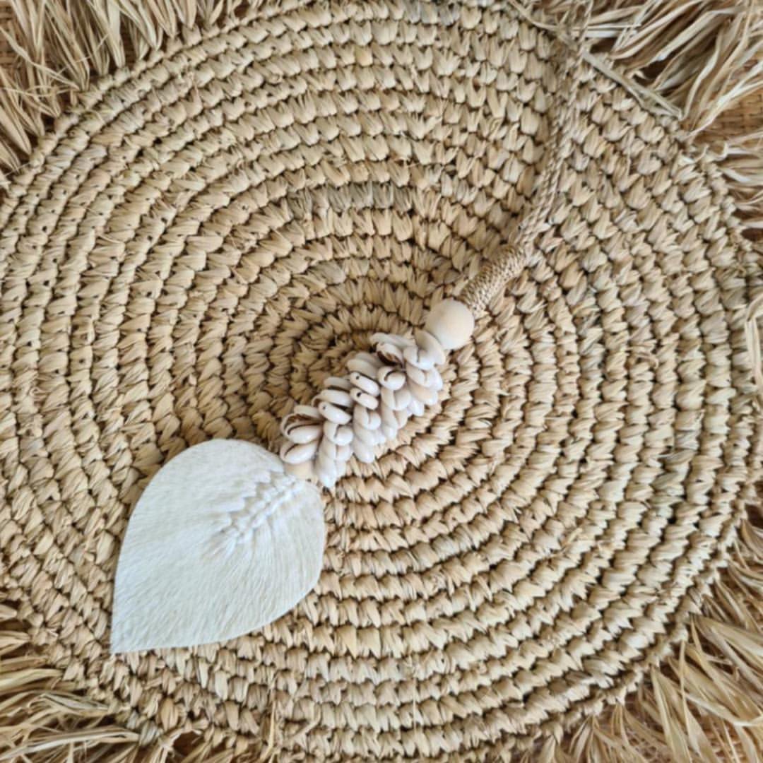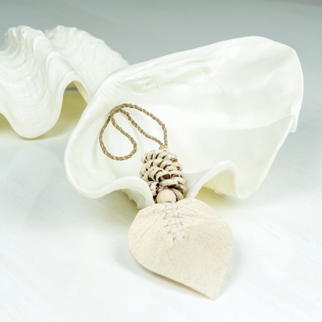 The leaf and shell tassel is a decorative accessory that combines the beauty of leaves with the unique textures of shells. This intricate and eye-catching tassel can be used in various ways to add a touch of nature-inspired elegance to your living space.