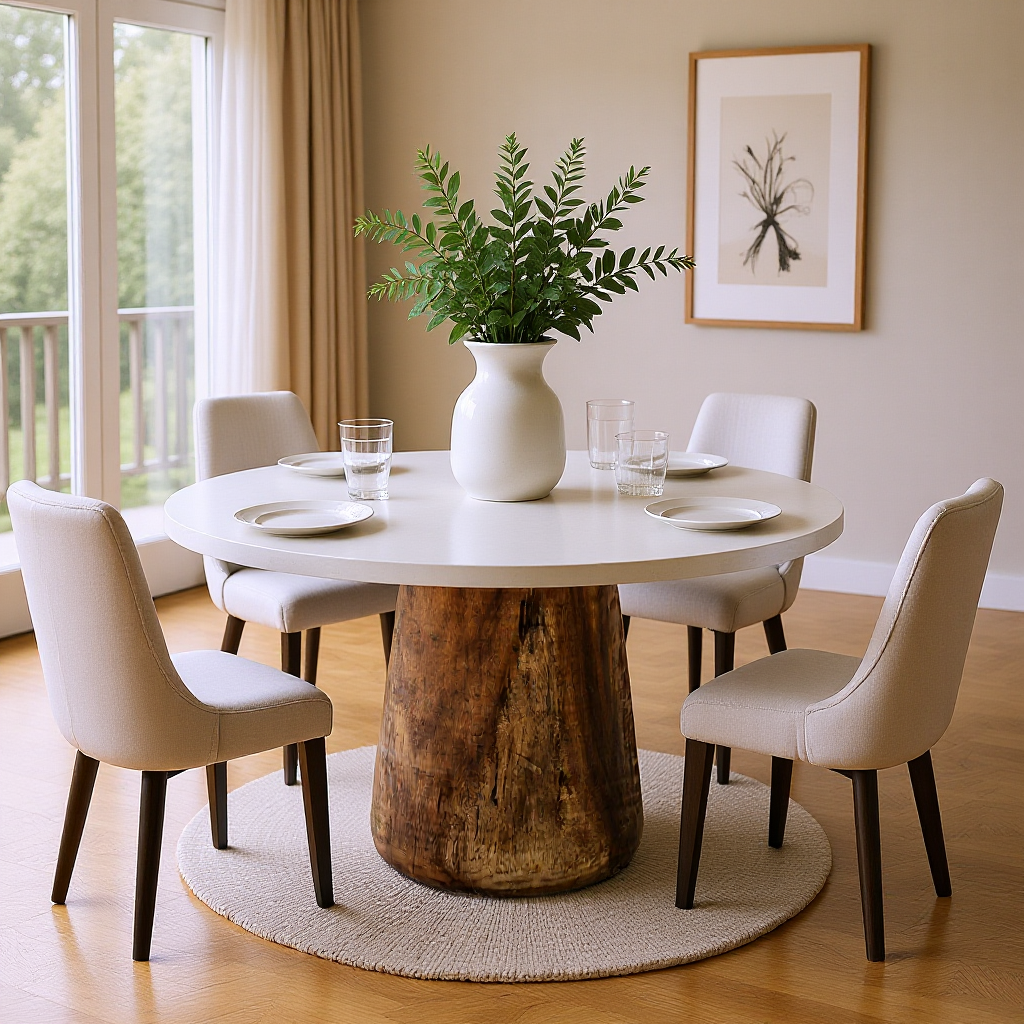 By combining the two woods and finishing the tabletop in white, you achieve a stunning contrast between the bright, clean look of the white finish and the natural beauty of the wood grains.