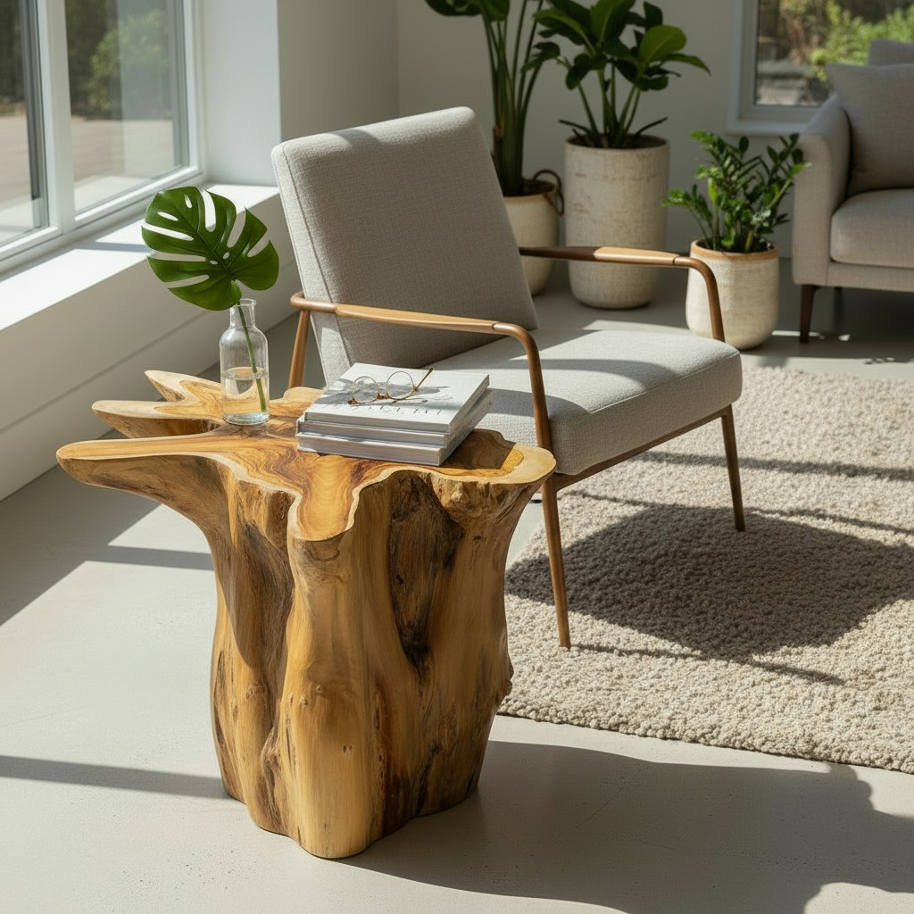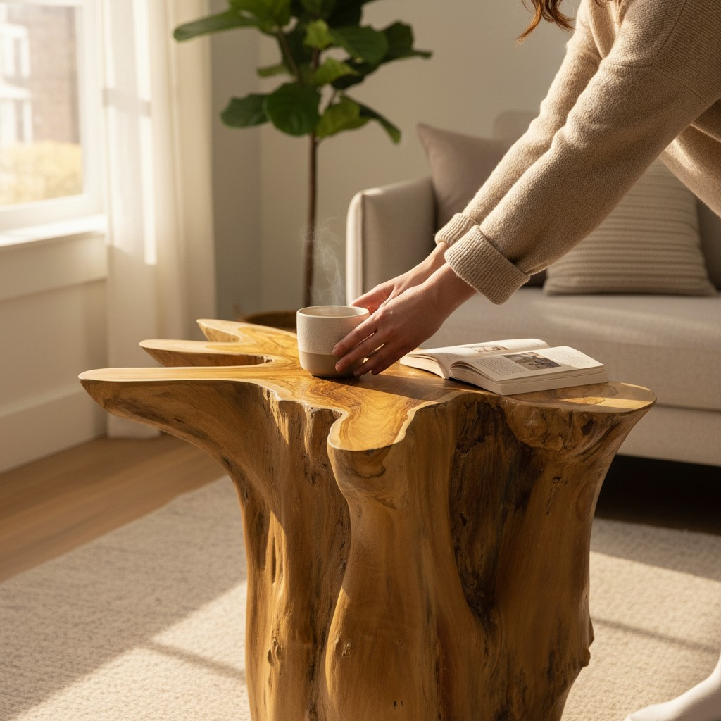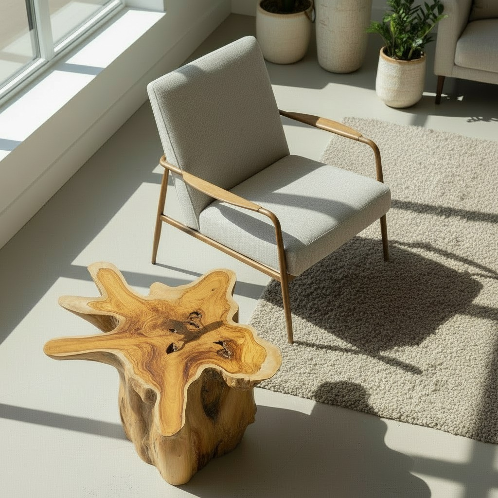 Fashioned from a trimmed tree root, each piece is meticulously hand-finished to accentuate the exquisite natural forms of the wood.