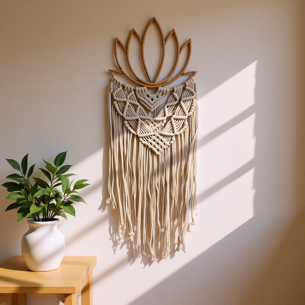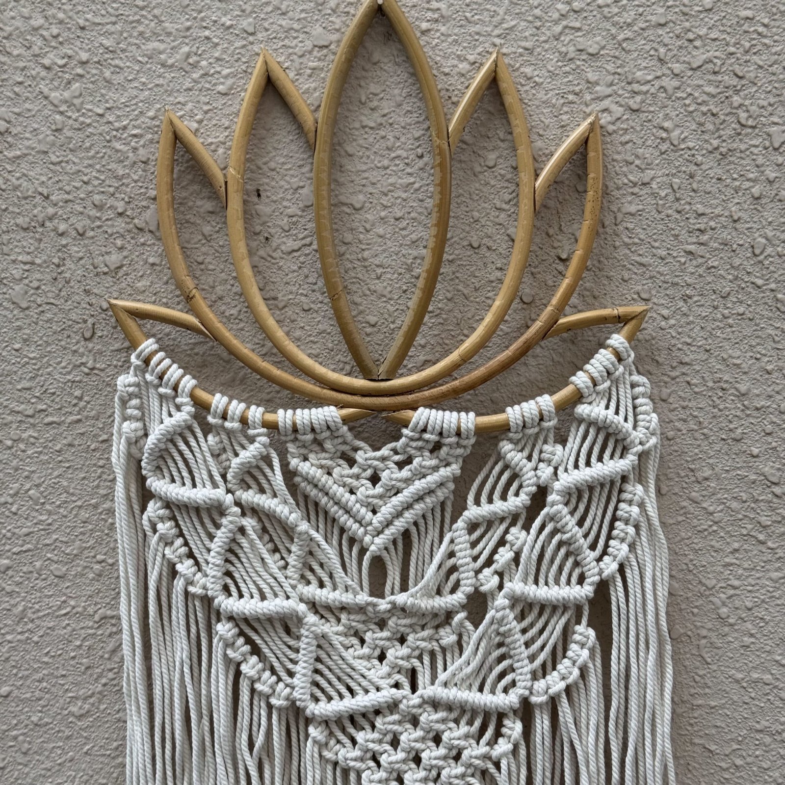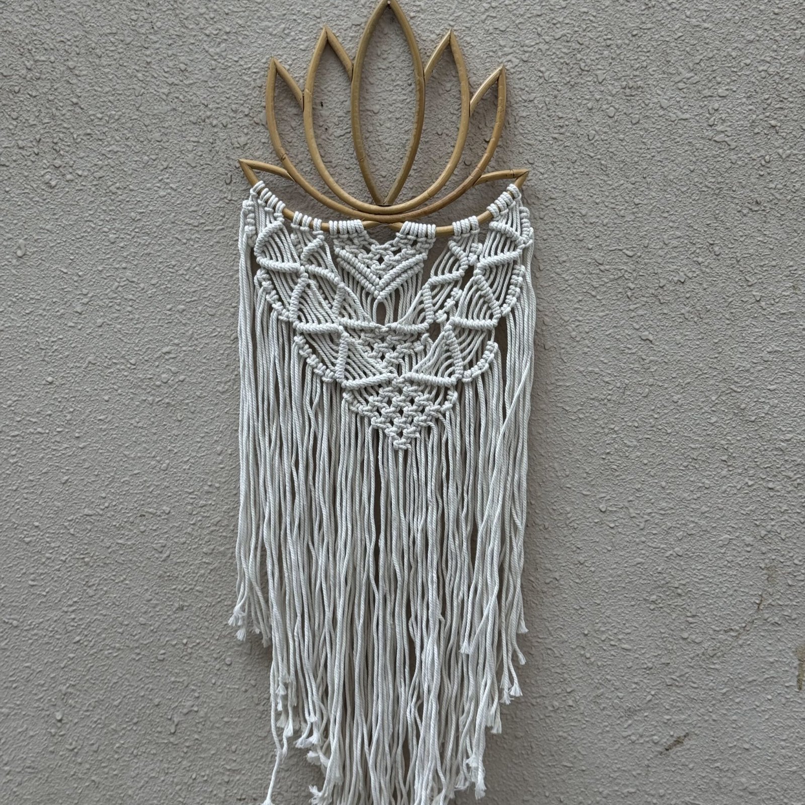 Infuse your space with serenity and symbolism with the Macramé Lotus Dreamcatcher. Hand-knotted in a graceful lotus design, this boho-inspired wall piece brings peaceful energy and delicate texture to bedrooms, meditation spaces, or cozy corners.