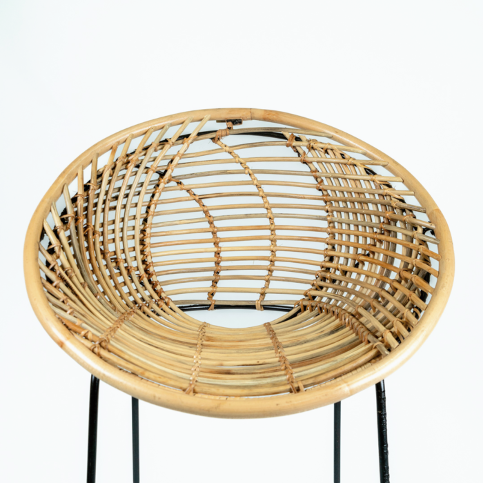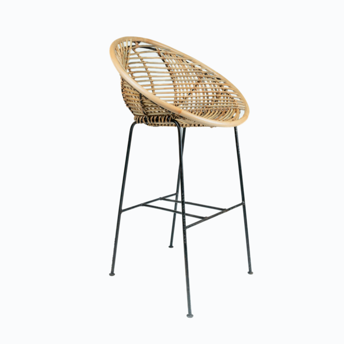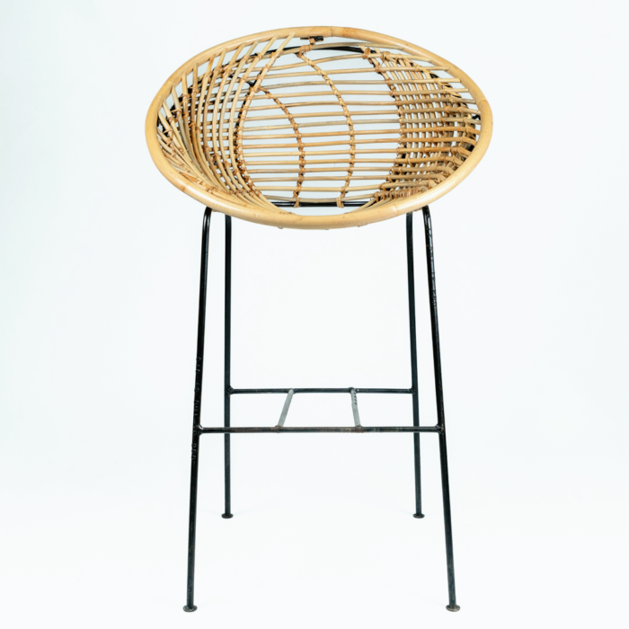 The Moa Rattan Bar Chair is handmade by weaving rattan cane to an iron frame using traditional wicker techniques. The clean lines of the natural rattan seat offset the chunky iron legs to create a beautiful chair, which is both extremely versatile and practical