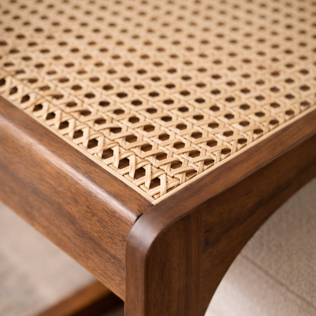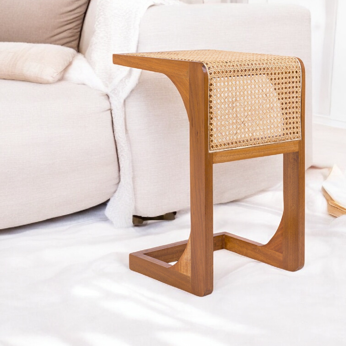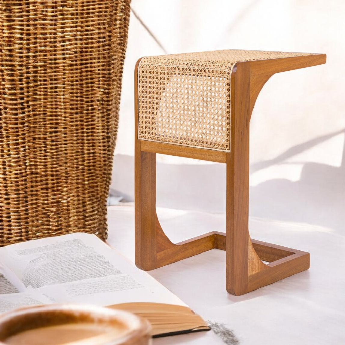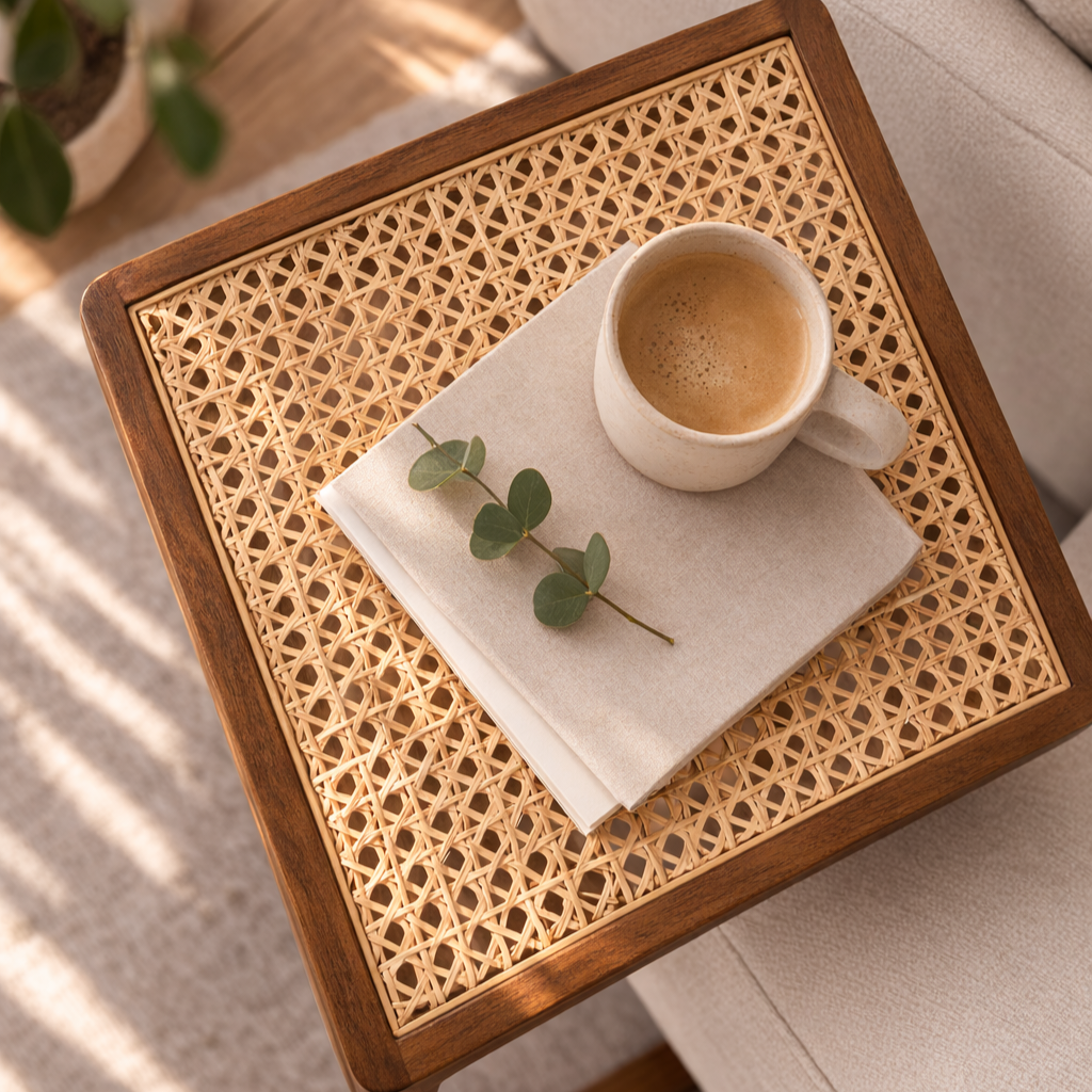 The Nisa Cane & Wood Side Table blends natural cane detailing with solid wood craftsmanship for a warm, timeless look. Its organic textures and clean silhouette make it a versatile accent—perfect beside a sofa, bed, or reading corner.