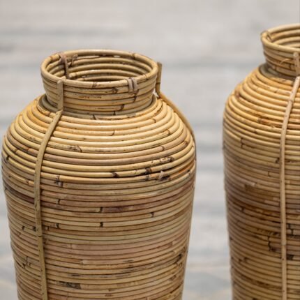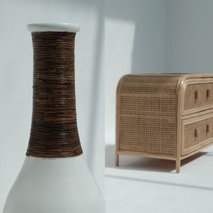 The organic high stool made of water hyacinth is a unique and eco-friendly piece of furniture.