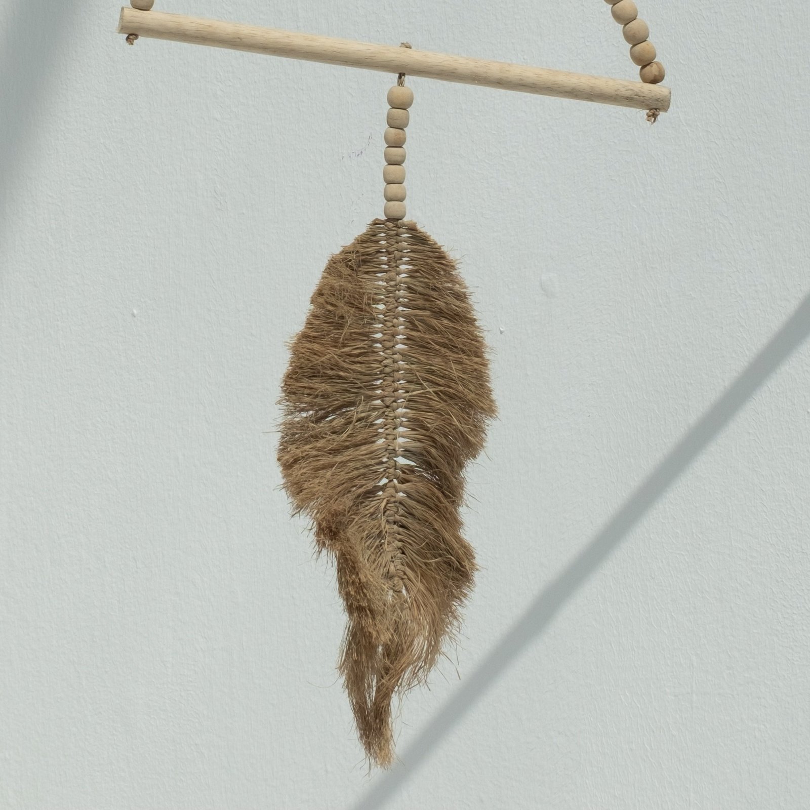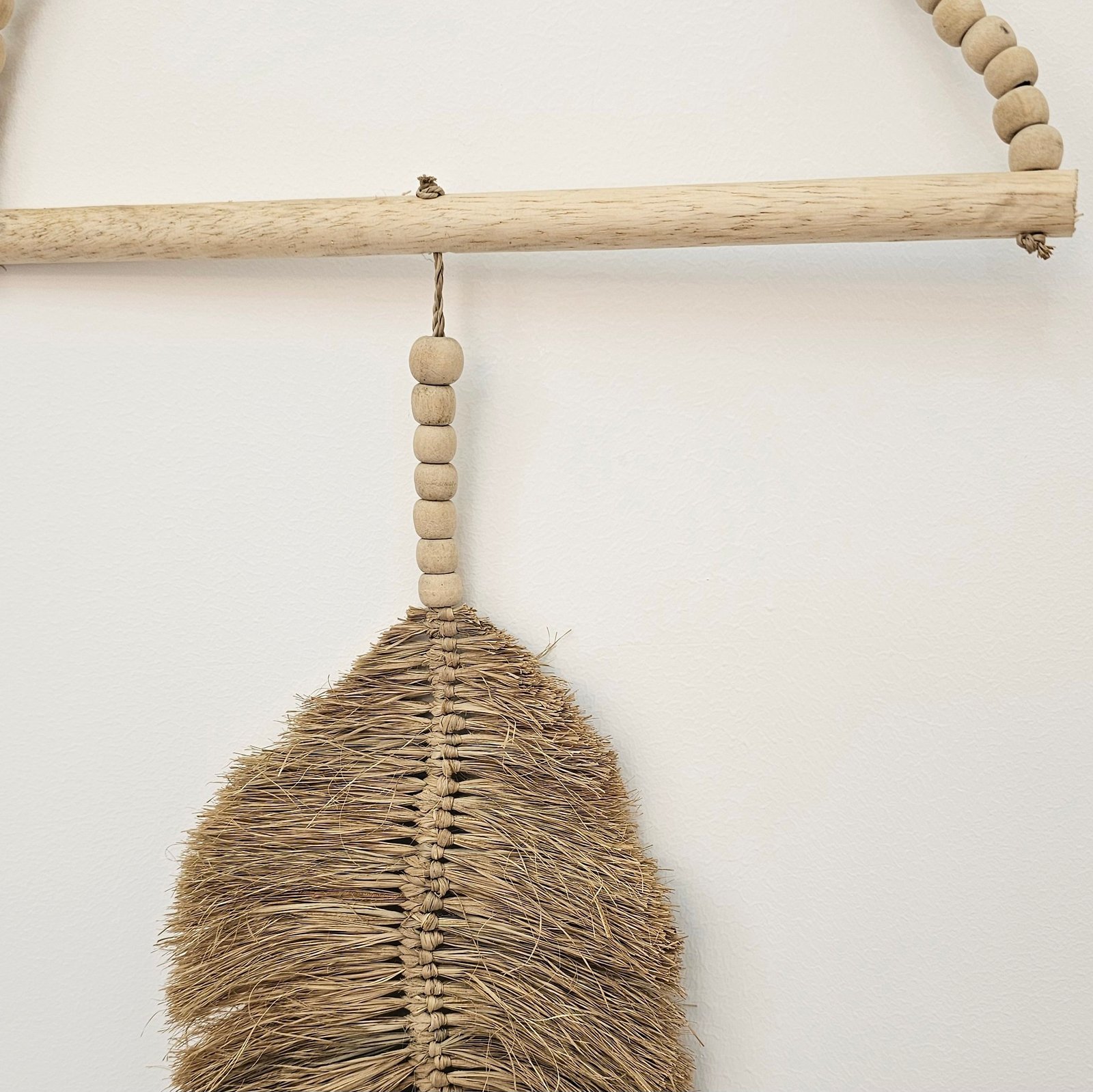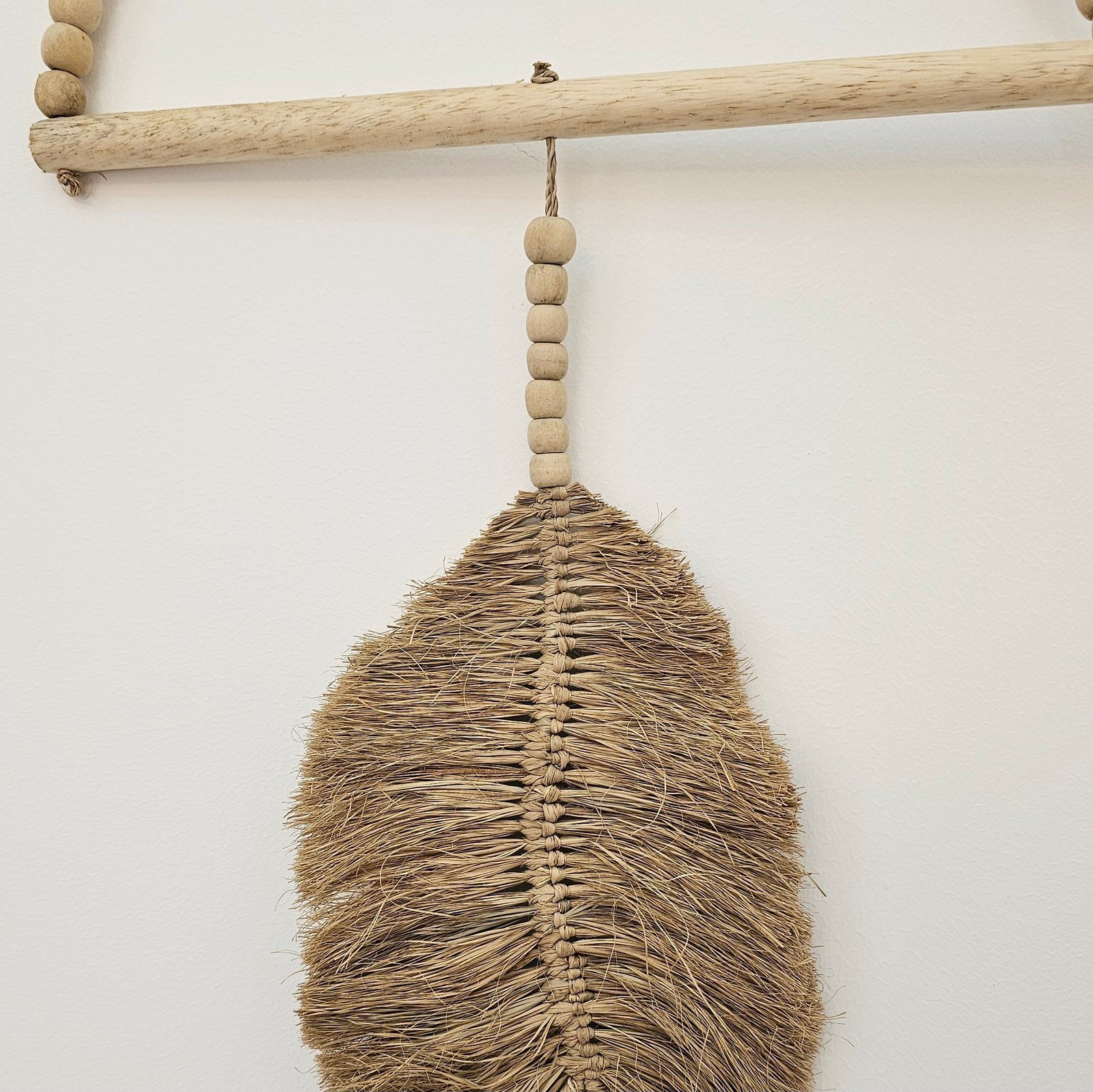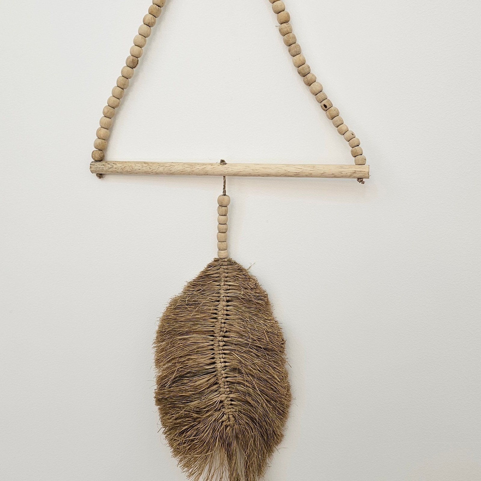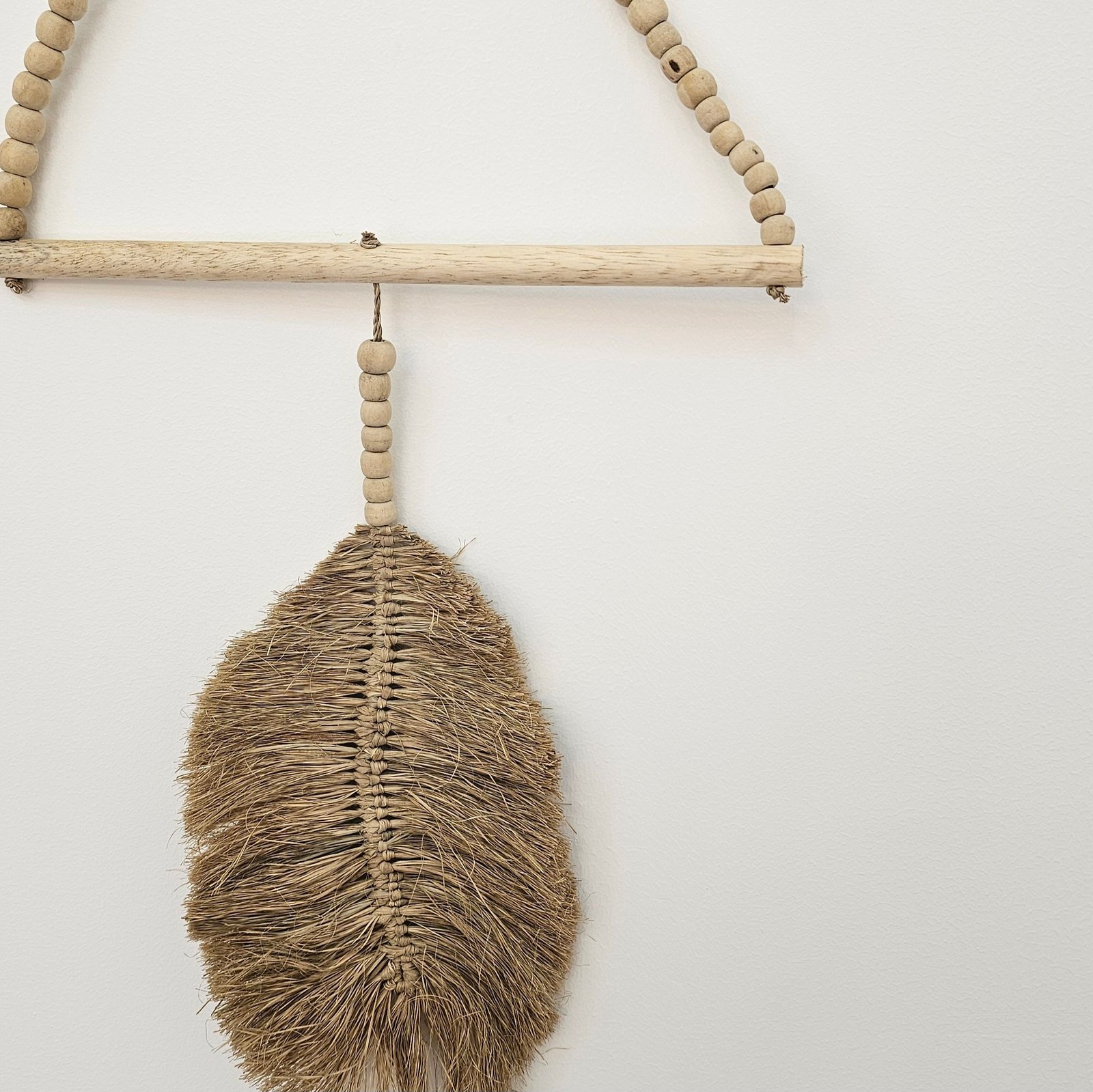 Add natural elegance to your walls with this handcrafted Raffia Leaf Wall Hanging. Featuring intricate raffia leaves and wooden beads, it brings texture and warmth to your space, perfect for coastal, boho, or earthy interiors.