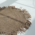 Our gorgeous natural rug is made of raffia. This material is a perfect alternative to artificial fibers and is water resistant. These grass-like leaves are durable, and when woven together, create the texturally rich and aesthetically beautiful rugs