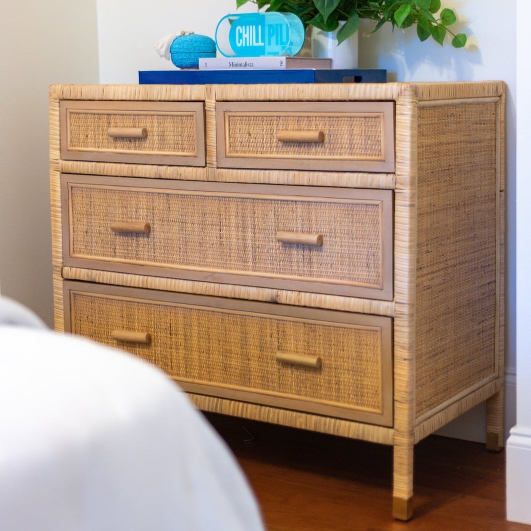 Designed for both beauty and function, the combination of wicker drawer fronts and sturdy wood construction creates an effortlessly elegant, nature-inspired look.