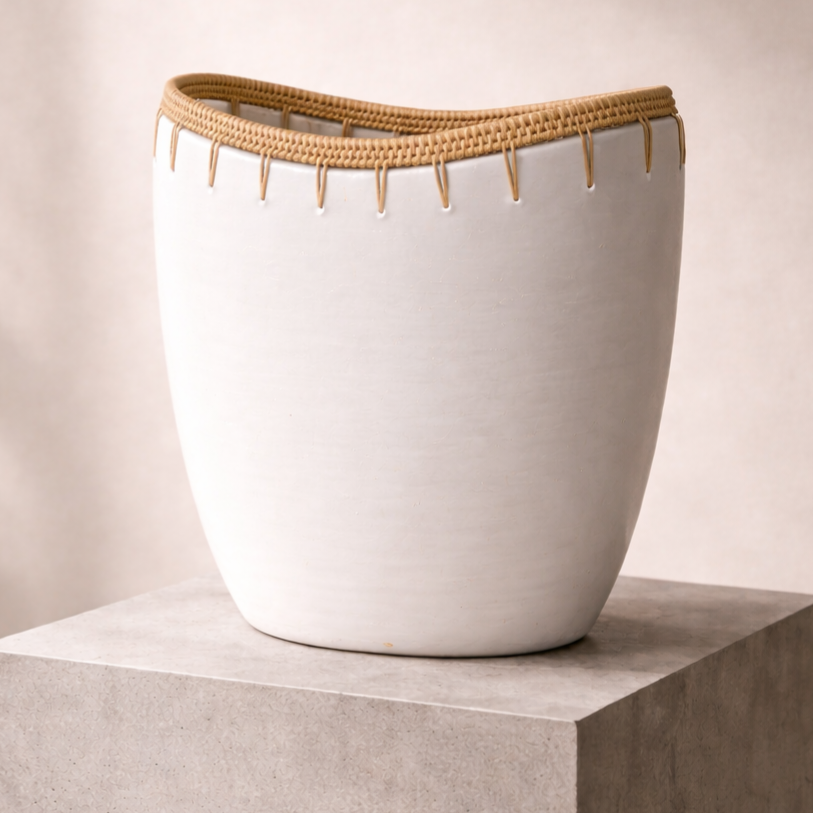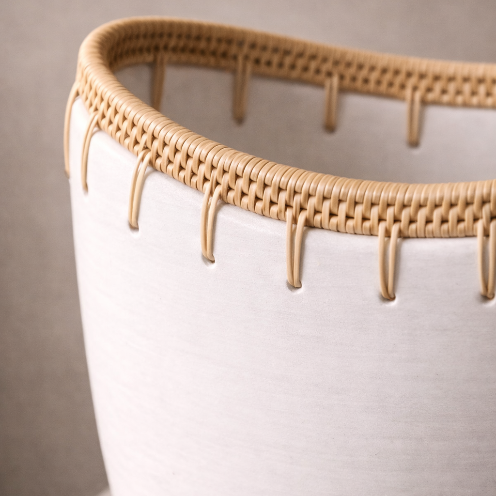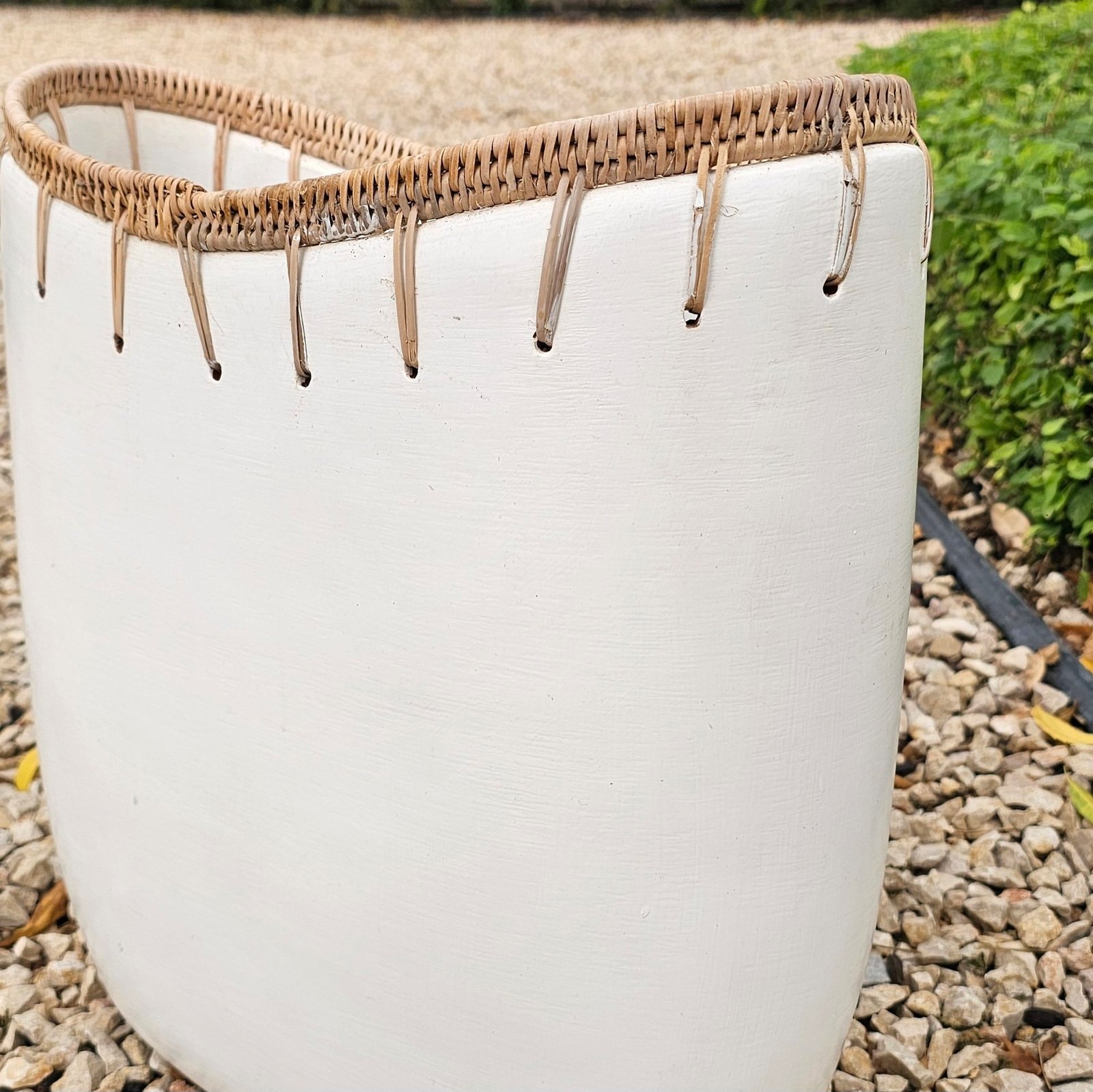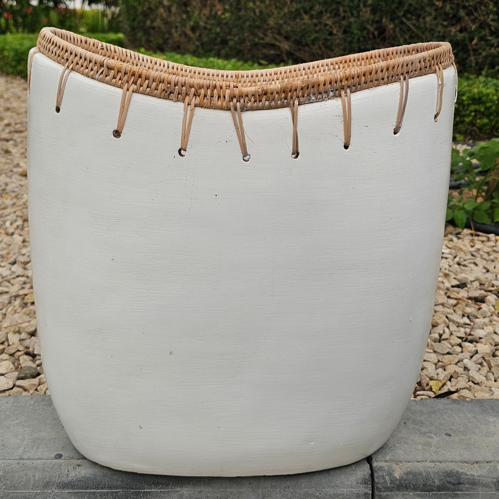 Stella Vase is a beautiful and distinctive piece that merges the earthy charm of terracotta with the natural elegance of rattan. This combination of materials creates a visually captivating contrast, blending the warmth of clay with the intricate textures of woven rattan.