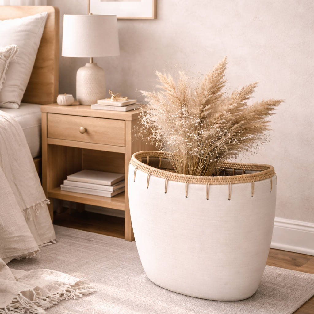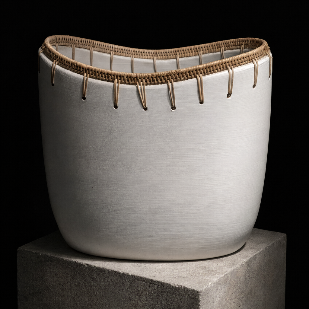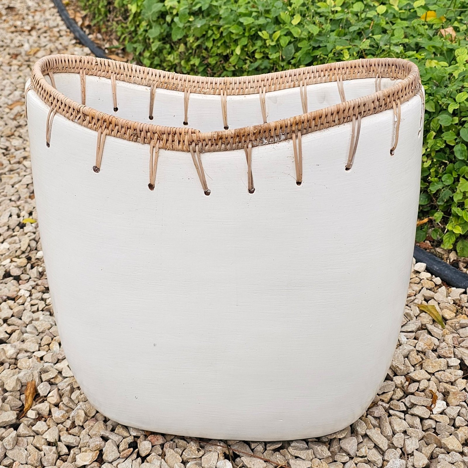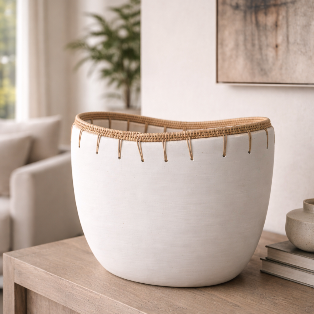 Stella Vase is a beautiful and distinctive piece that merges the earthy charm of terracotta with the natural elegance of rattan. This combination of materials creates a visually captivating contrast, blending the warmth of clay with the intricate textures of woven rattan.