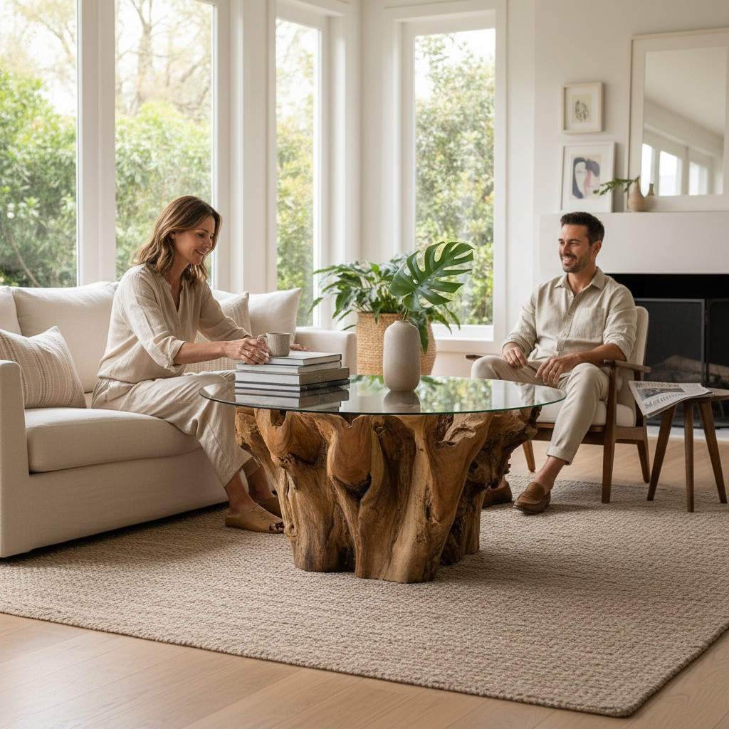 A natural masterpiece revived and ready to welcome generations to come. Made with a tree root that has been trimmed and hand finished to enhance the exquisite forms of the wood.