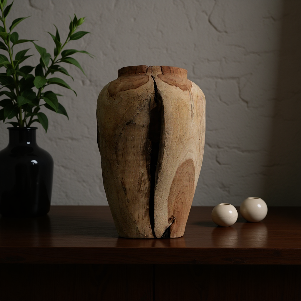 Sleek, sculptural, and full of character — our Teak Vase celebrates the raw elegance of nature. Each piece is hand-carved from solid teak wood, highlighting its rich texture and one-of-a-kind wood grain. A simple statement that elevates any corner.