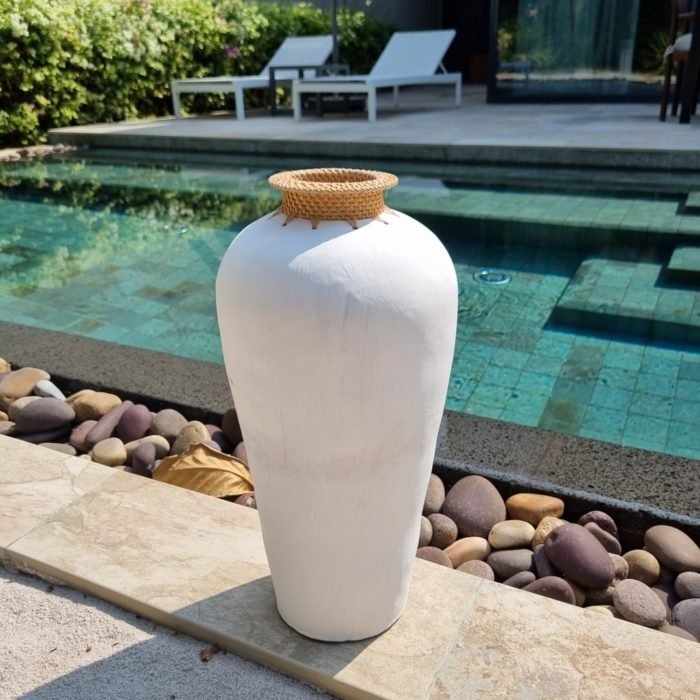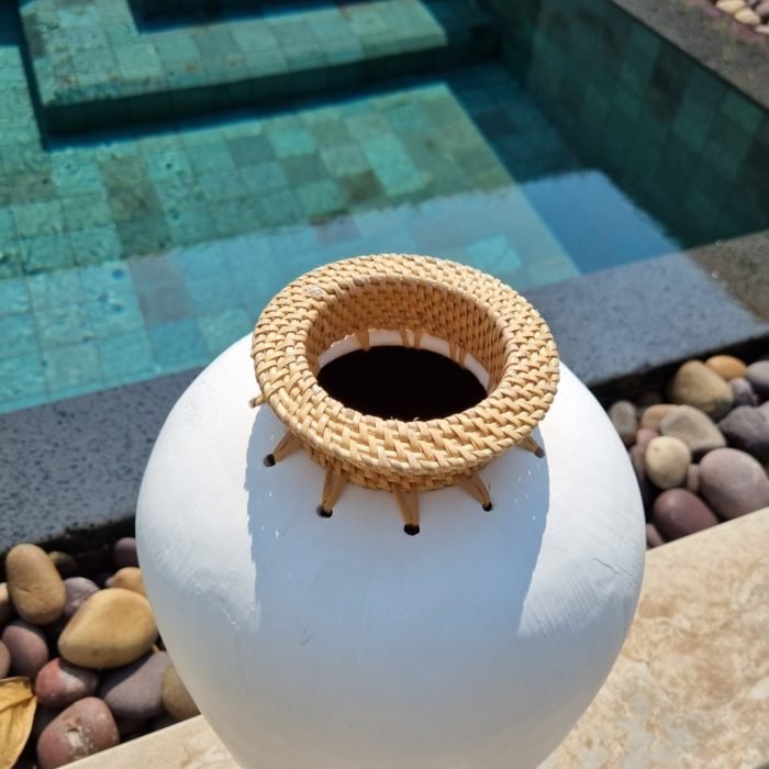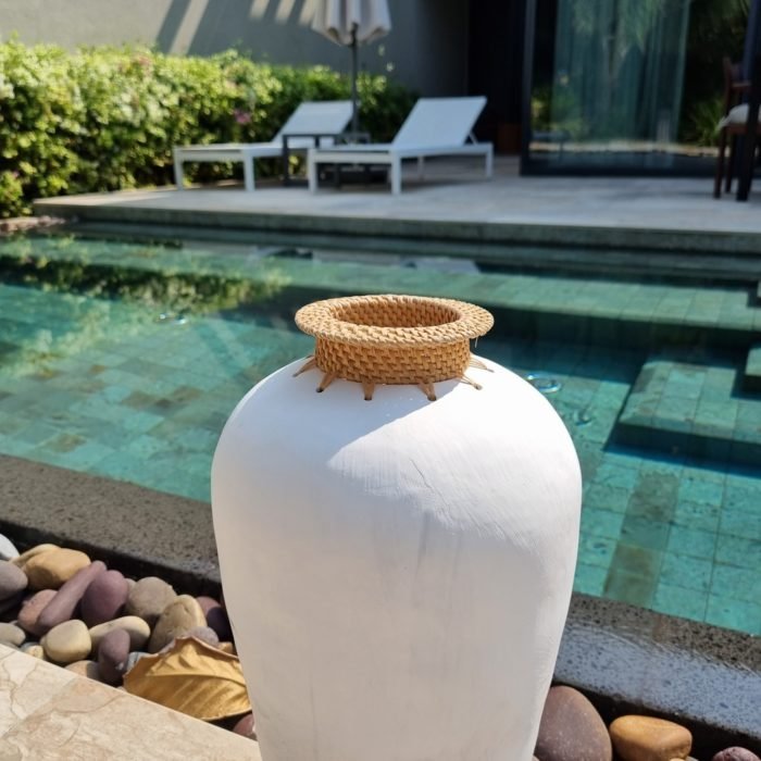 Toscany Vase is a beautiful and distinctive piece that merges the earthy charm of terracotta with the natural elegance of rattan. This combination of materials creates a visually captivating contrast, blending the warmth of clay with the intricate textures of woven rattan.