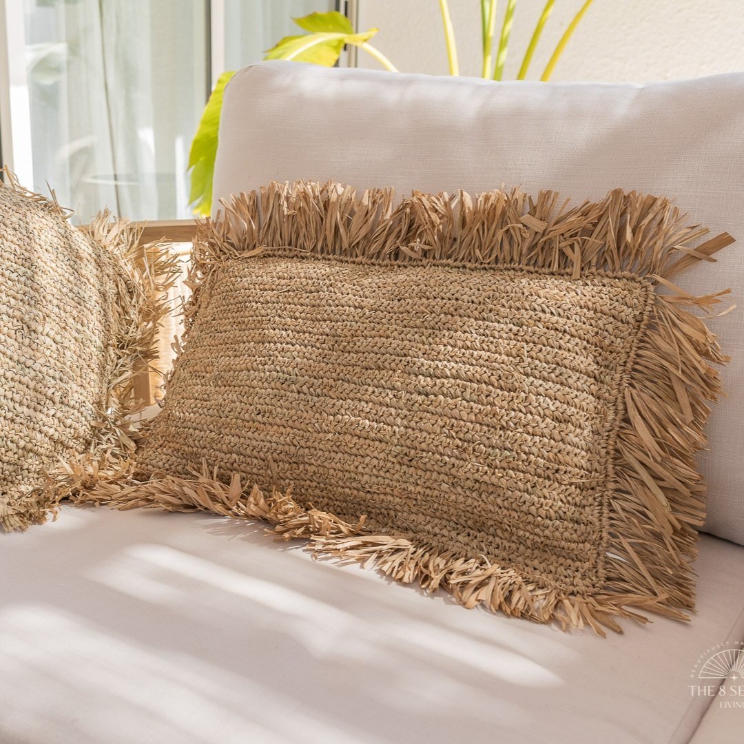 Add tropical texture to your home with these cushions made from woven raffia. A must-have to add a boho vibe to your living room, bedroom, even in the garden or patio.